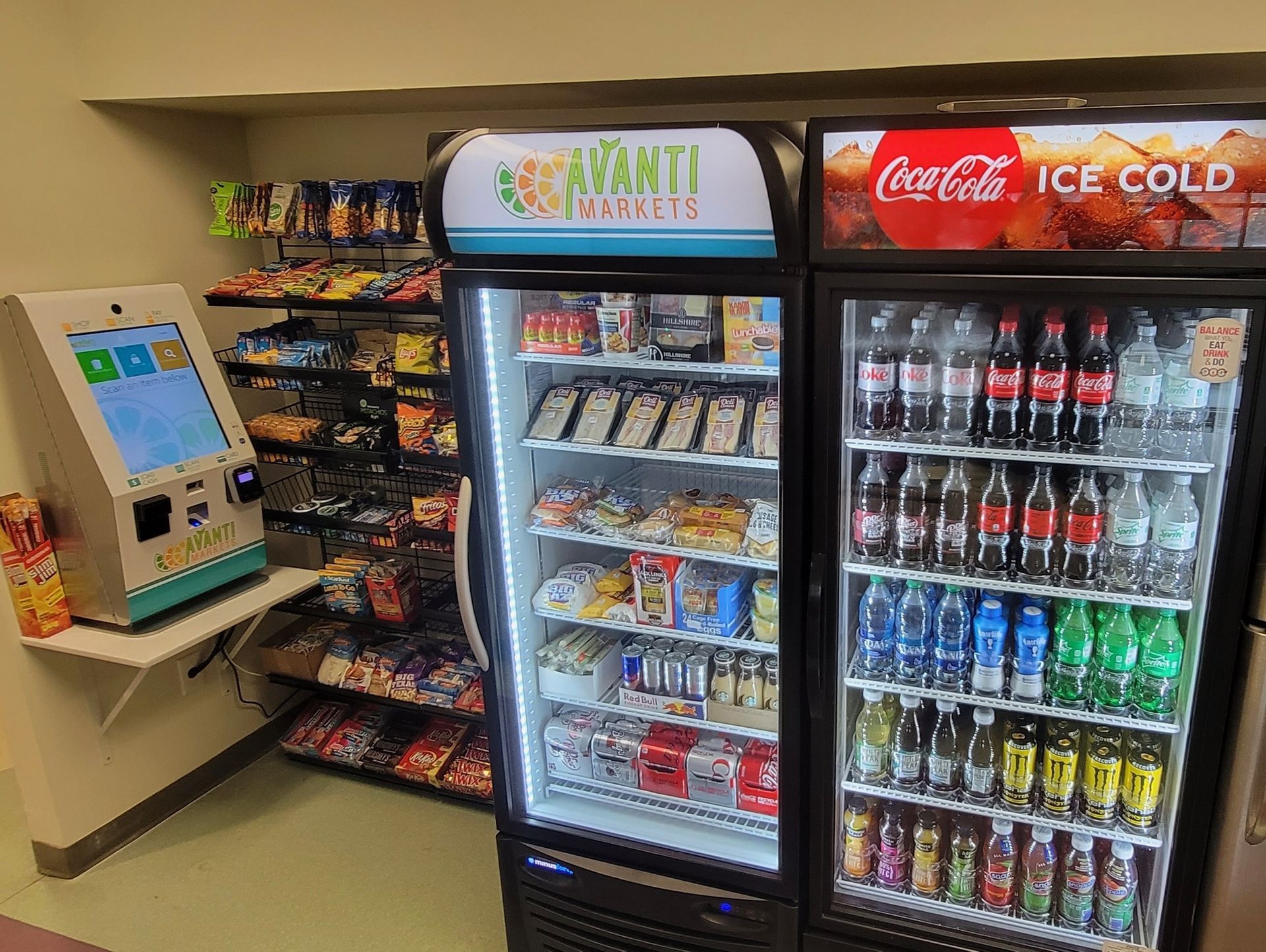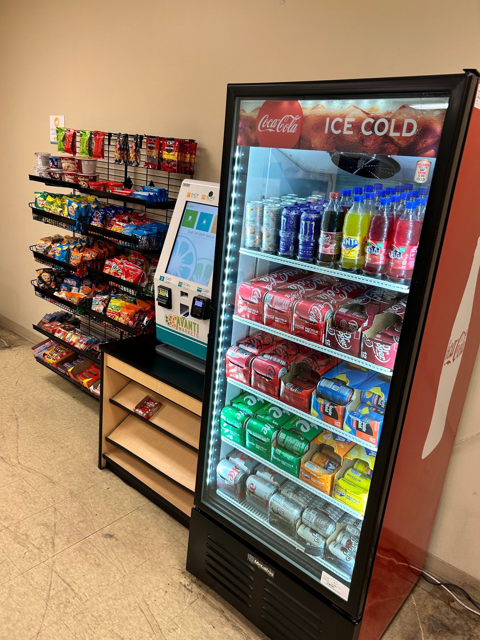 With open shelving, coolers, and smart checkout kiosks, your team can grab fresh meals, snacks, and beverages anytime... no off-site trips needed. Whether it’s a morning coffee, a quick lunch, or an afternoon pick-me-up, we make it easy for employees to stay refreshed and focused throughout the day.